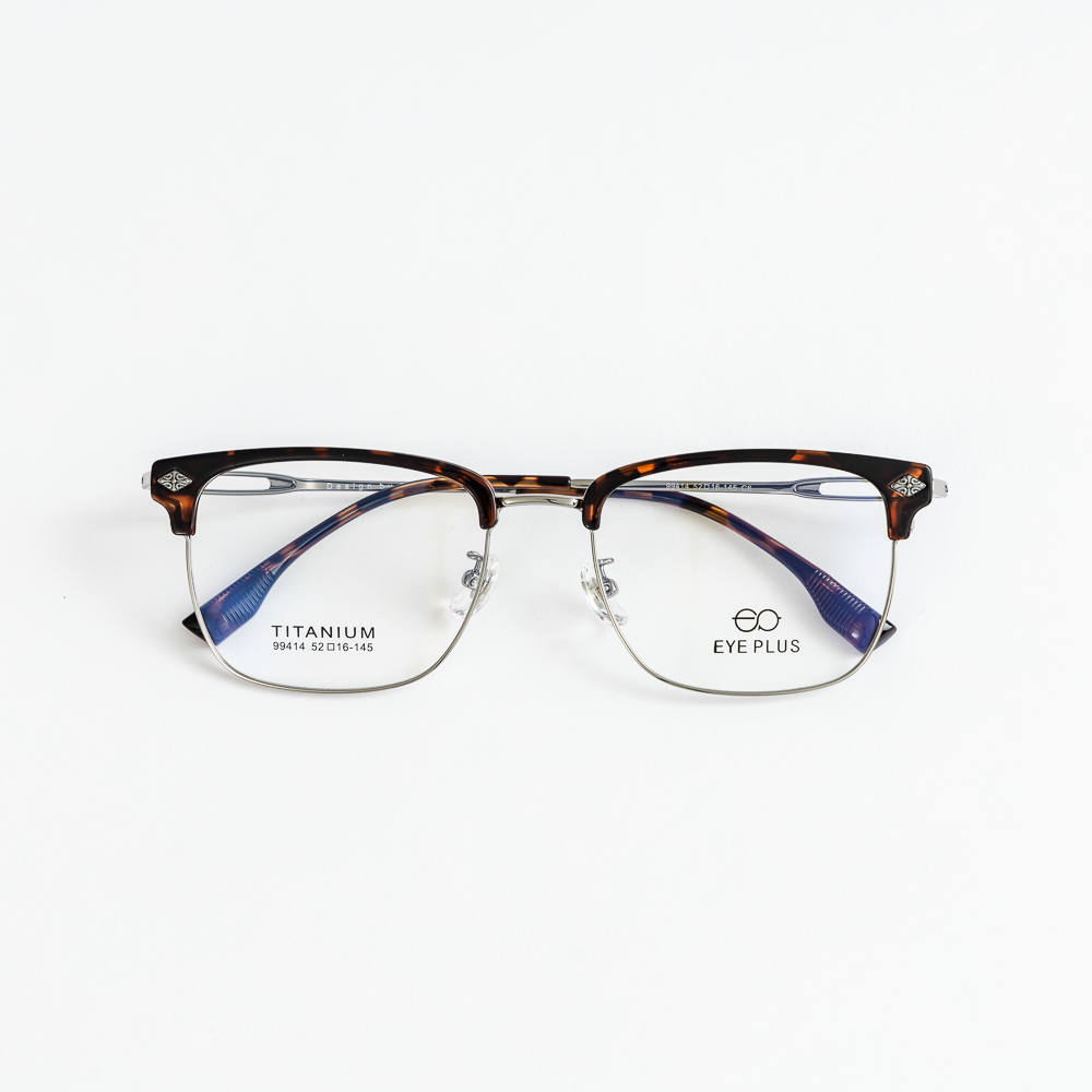 Gọng kính 99414 của thương hiệu Kính Mắt EyePlus mang dáng Clubmaster kinh điển, là lựa chọn hoàn hảo cho những quý ông yêu thích vẻ ngoài chỉn chu, mạnh mẽ và trưởng thành. Phần gọng trên dày tạo điểm nhấn cứng cáp, trong khi phần gọng dưới thanh mảnh giúp tổng thể hài hòa, hiện đại.